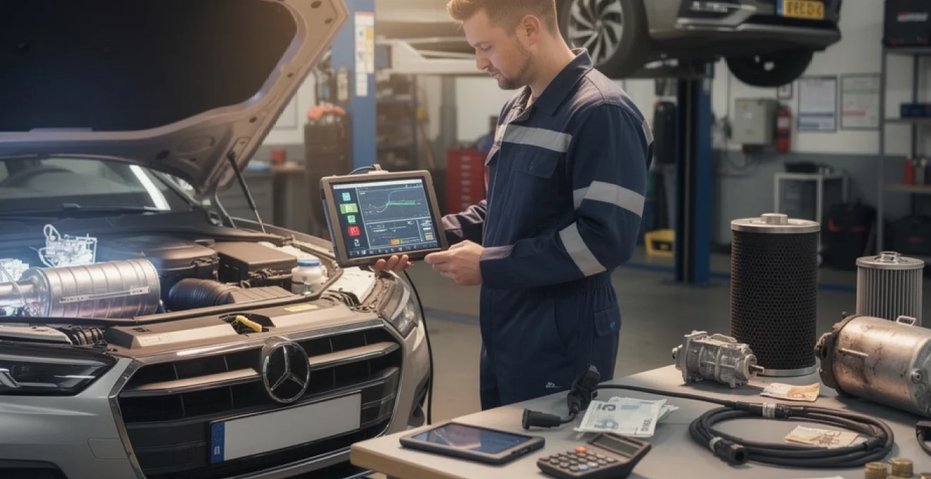 Bosch KTS diagnostieksystemen behoren tot de meest geavanceerde tools voor Mercedes-Benz AdBlue systemen, met aanschafkosten van €15.000 tot €25.000 voor professionele garages. Deze investering wordt doorberekend in de diagnostiekosten, waarbij Mercedes specialisten doorgaans €120 tot €180 rekenen voor uitgebreide AdBlue systeemdiagnostiek. De h